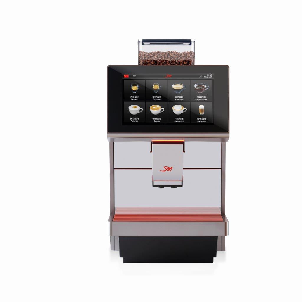 The touchscreen display can be customised and allows choosing from a 24-beverage menu. The free-standing version with the big tank is ideal for any location having only electricity available and no water line connection.